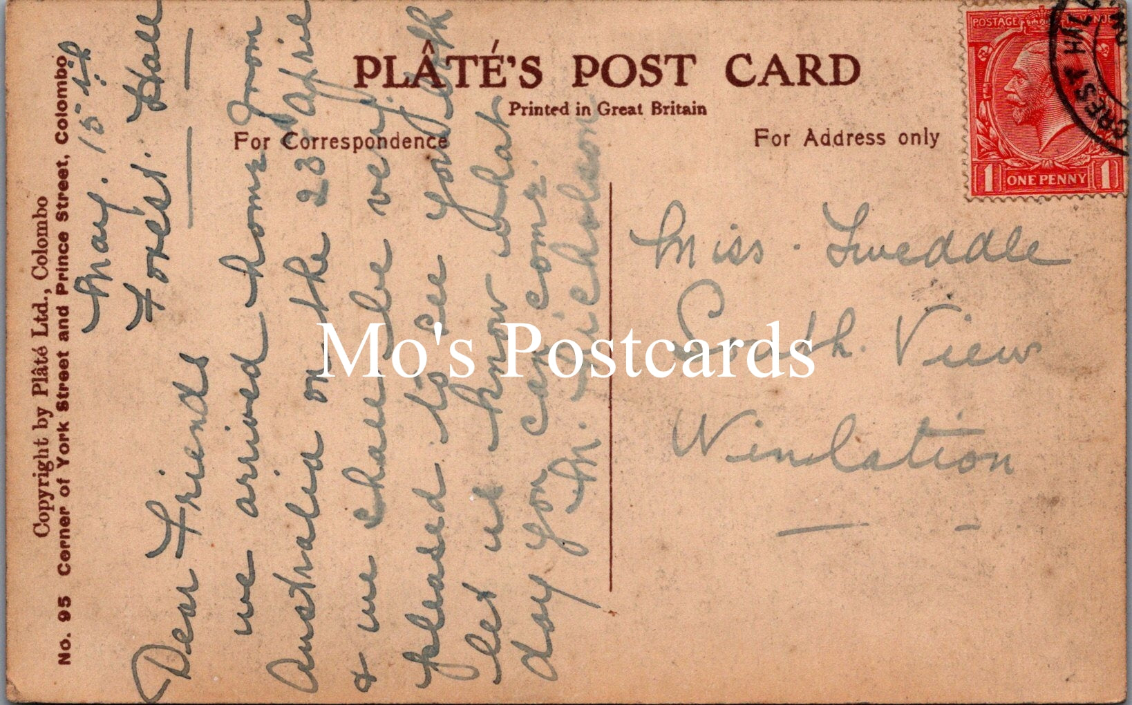 The 'Mo's Postcards' watermark does not appear on the actual postcard'.