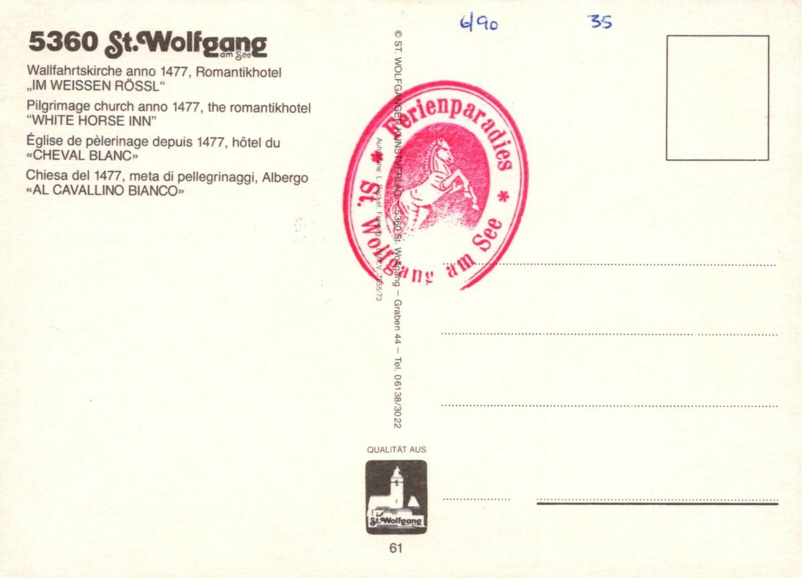 This is an Austria Postcard - Aerial View of St Wolfgang im Salzkammergut RR9001
