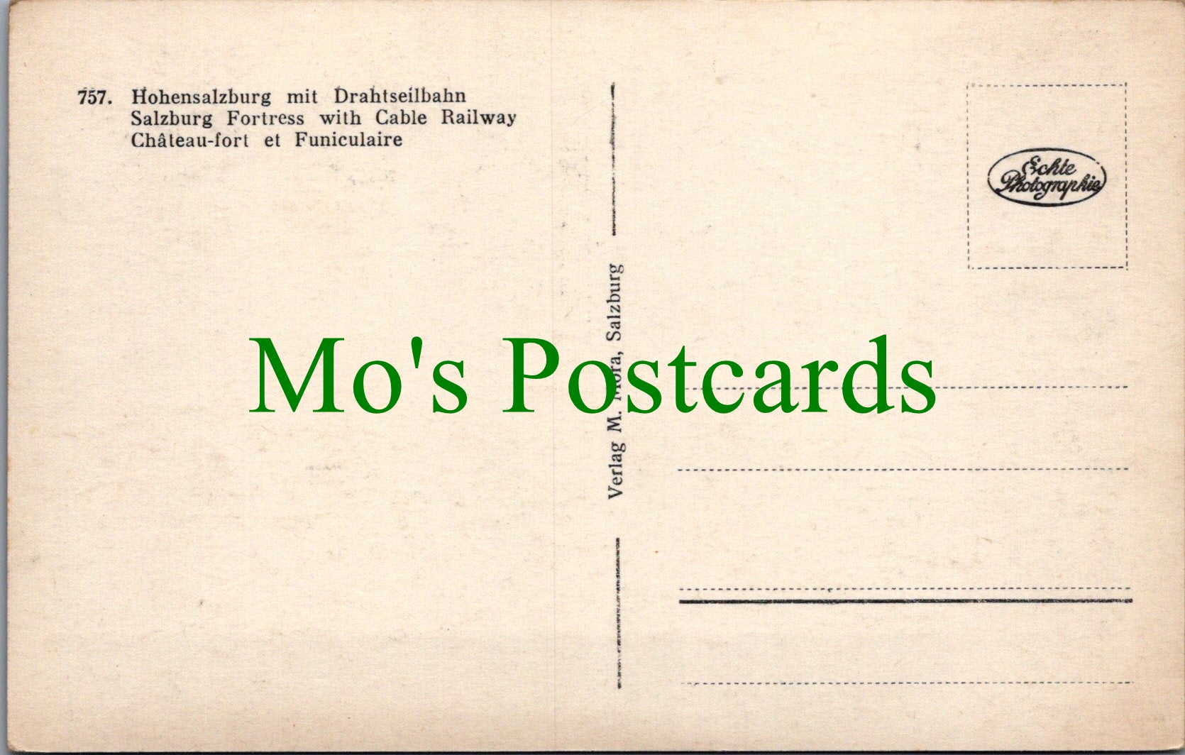 This is an Austria Postcard - Salzburg Fortress With Cable Railway SW12531