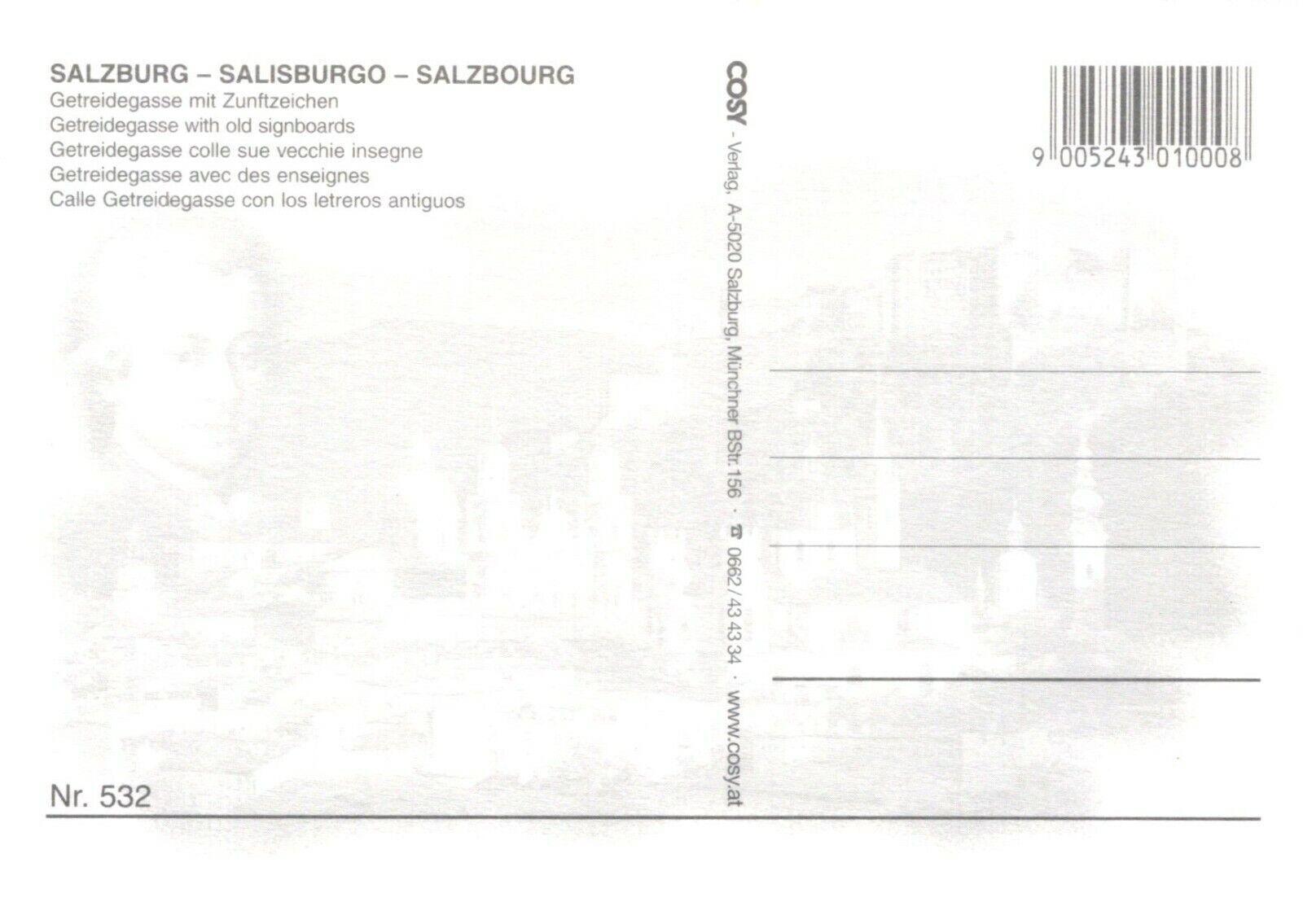 Postcard Description: Austria Postcard - Salzburg - Getreidegasse With Old Signboards