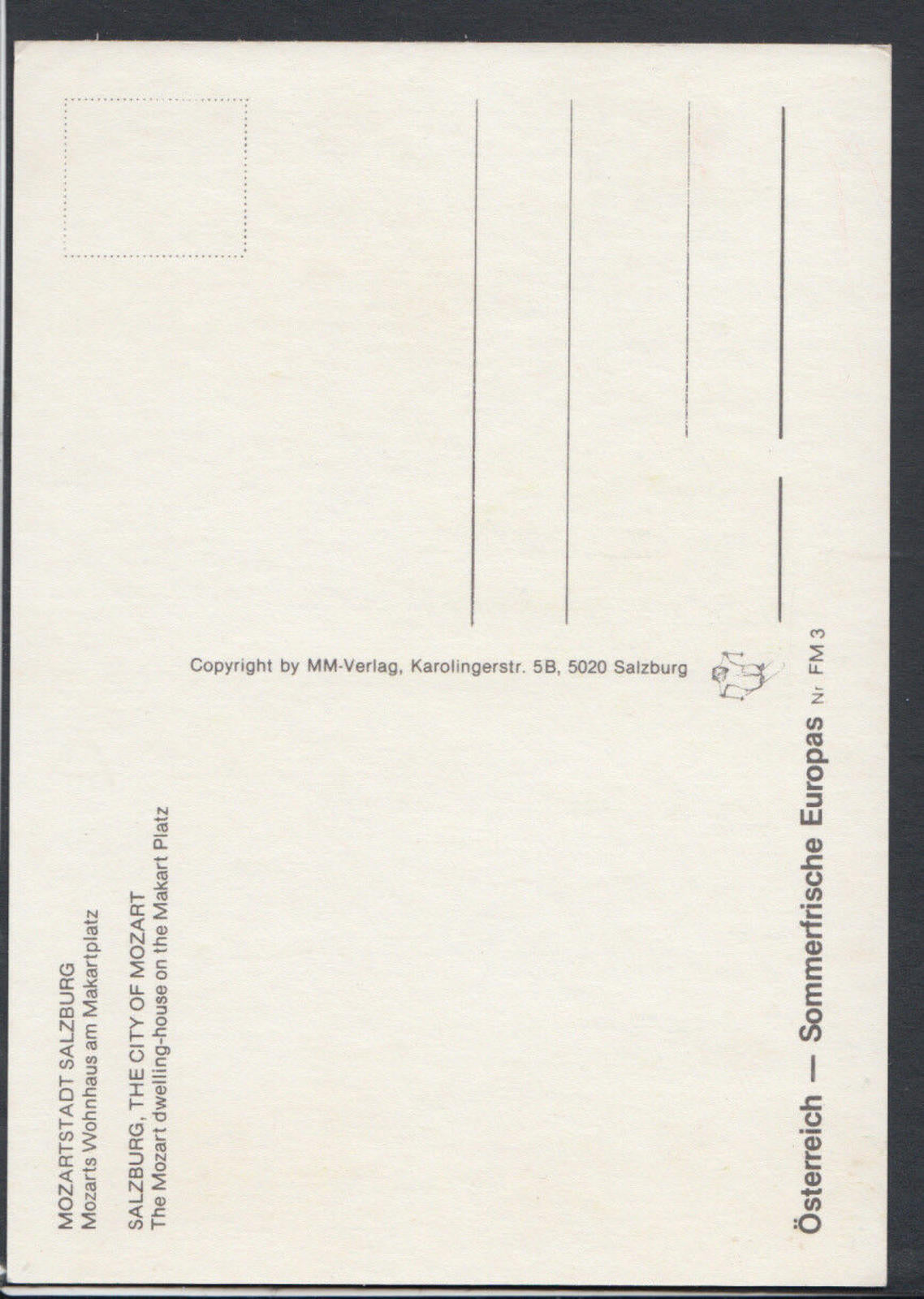 Postcard Description: Austria Postcard - Salzburg - The Mozart Dwelling-House On The Makart Platz