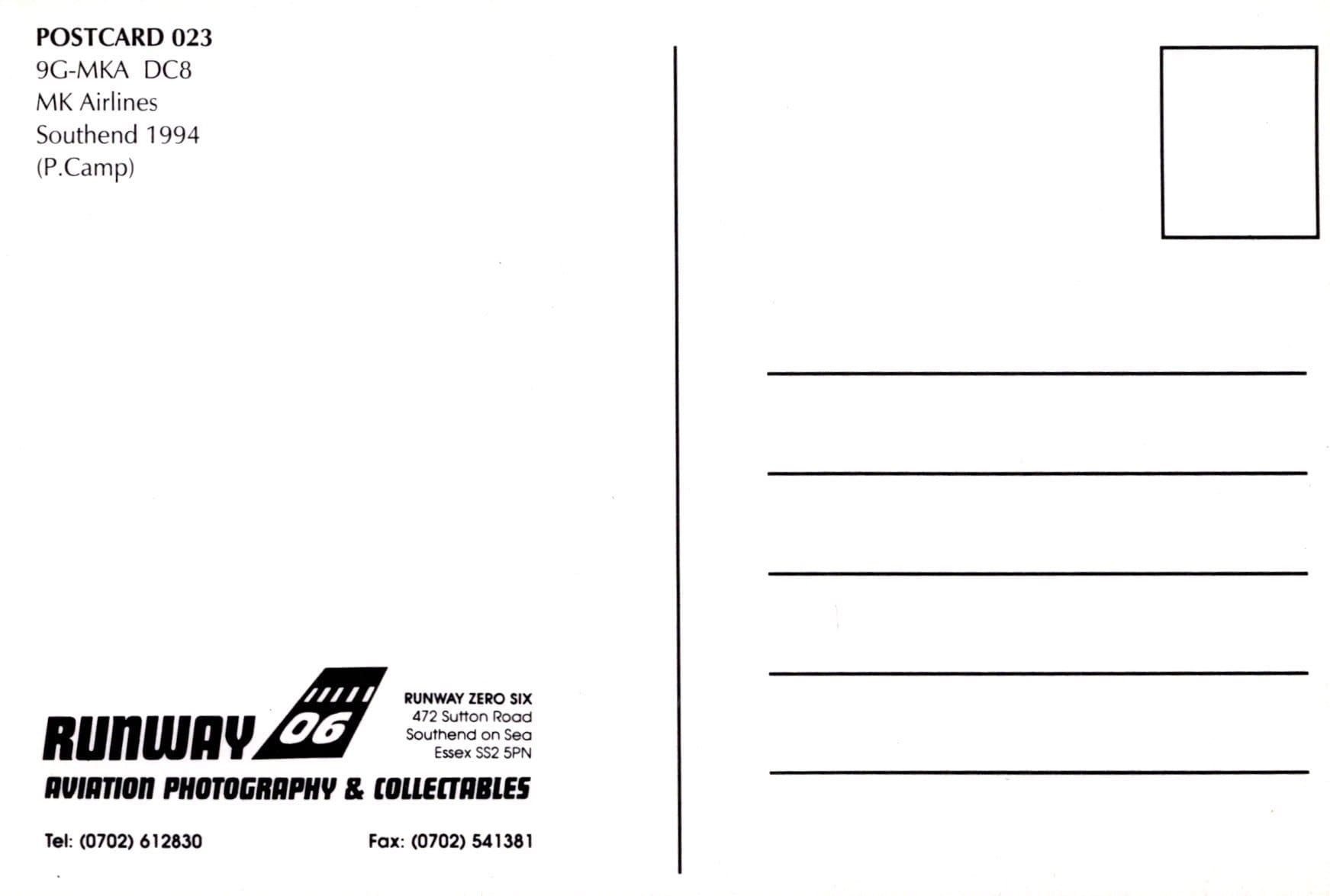 Aviation Postcard - 9G-MKA DC8 MK Airlines Aeroplane, Southend Airport SW936