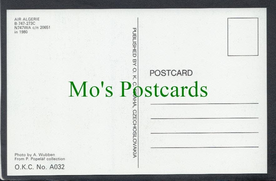 Mo's Postcards offers for sale an Aviation Postcard - Air Algerie B-747 Aeroplane.