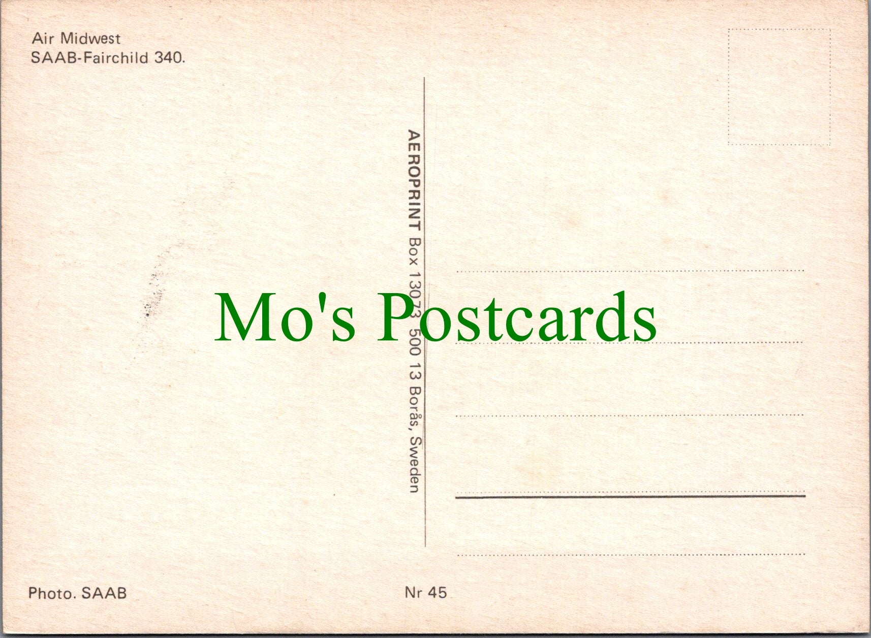Mo's Ref:  Aviation Postcard - Air Midwest SAAB Fairchild 340 Aeroplane SW13720