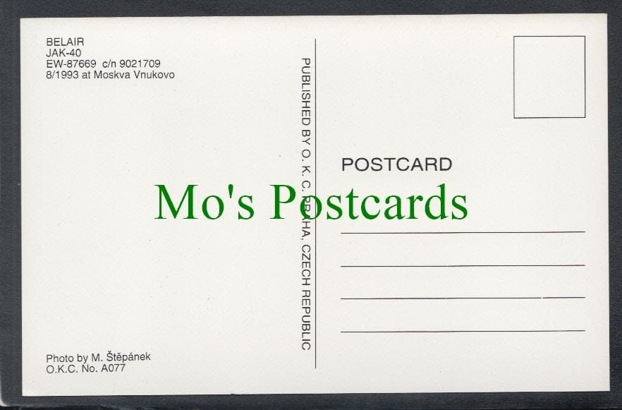 Mo's Postcards offers for sale an Aviation Postcard - Belair JAK-40 Aeroplane.