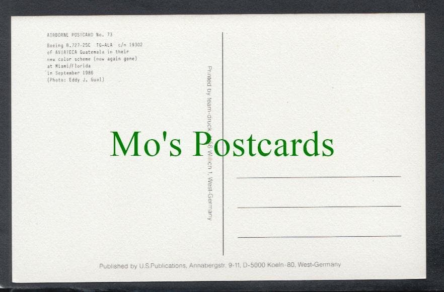 Mo's Postcards offers for sale an Aviation Postcard - Boeing 727 Aviateca Aeroplane (Guatemala)