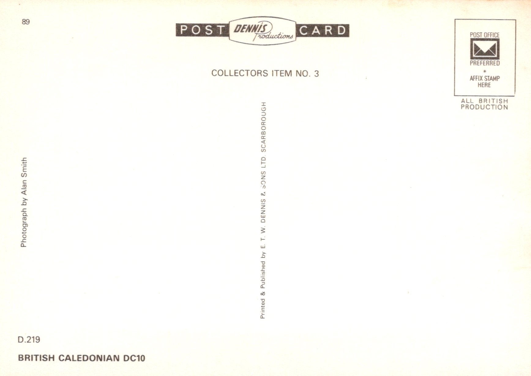 This is an Aviation Postcard - British Caledonian DC10 Aeroplane  SW19017