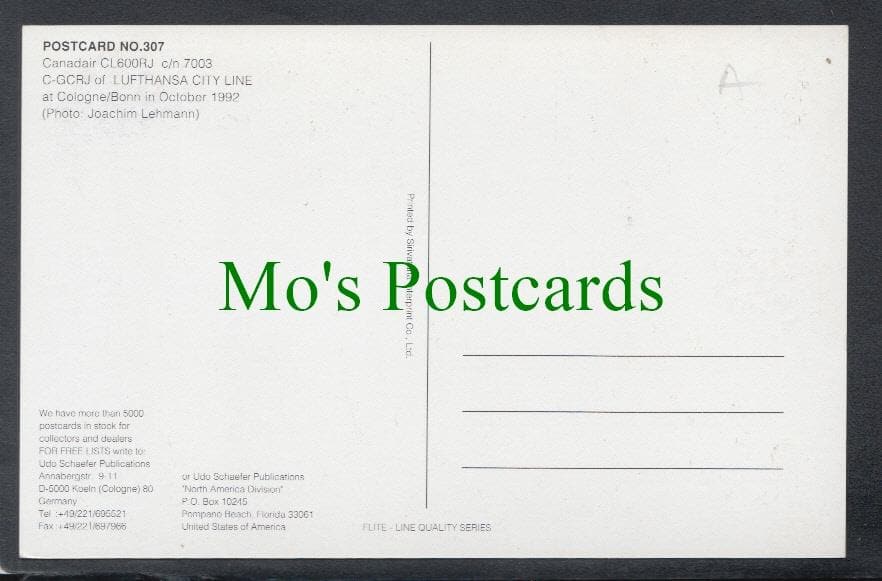 Mo's Postcards offers for sale an Aviation Postcard - Canadair CL600RJ Aeroplane. Lufthansa City Line.