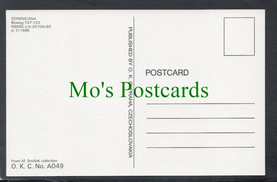 Mo's Postcards offers for sale an Aviation Postcard - Dominicana Boeing Aeroplane.