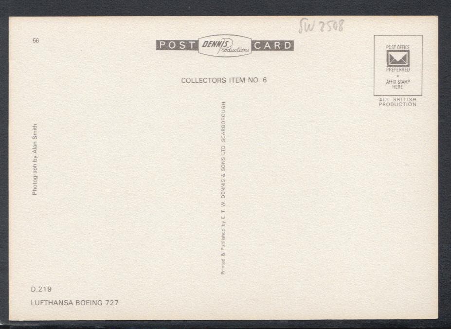 Aviation Postcard - Lufthansa Boeing 727 Aeroplane SW2508