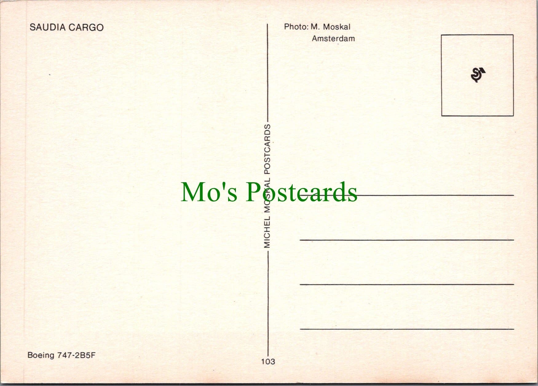 Mo's Postcards offers for sale an Aviation Postcard - Saudia Cargo Boeing 747.