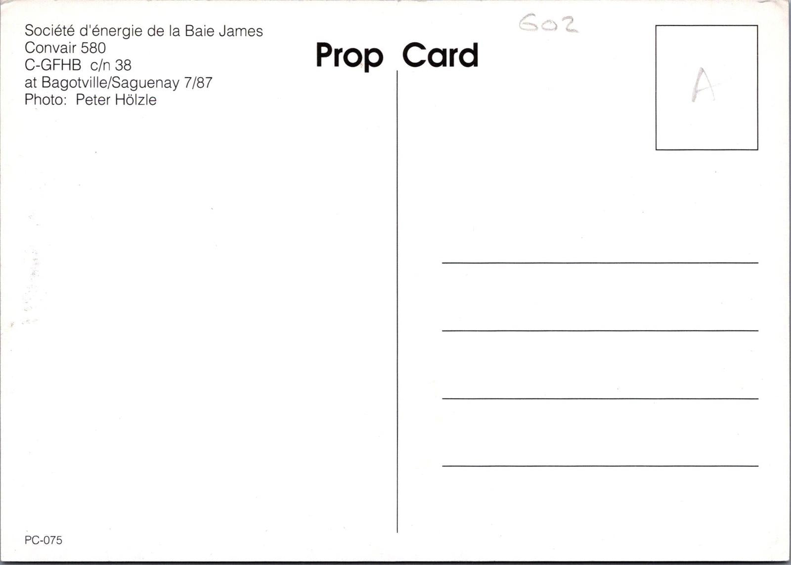 Aviation Postcard - Societe d'Energie De La Baie James Convair Aeroplane RR18513