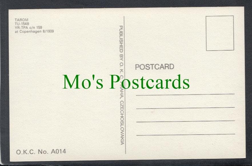 Mo's Postcards offers for sale an Aviation Postcard - Tarom TU-154B Aeroplane at Copenhagen Airport in 1989.