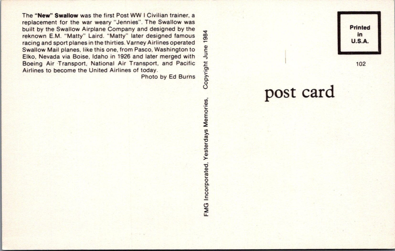 This is an Aviation Postcard - The Bird Model A Aeroplane SW16530