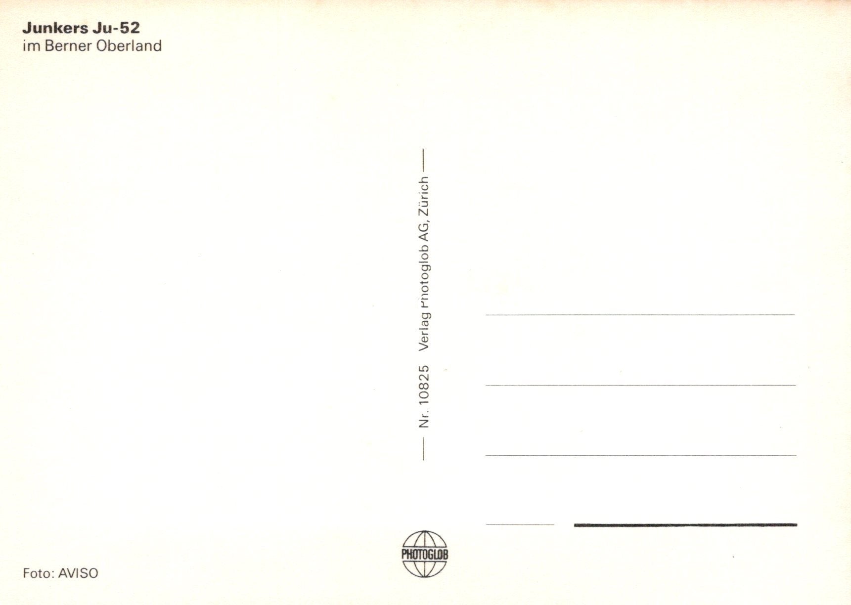 Mo's Ref: Civil Aviation Postcard - Junkers Ju-52 Aeroplane in Berner Oberland SW19008
