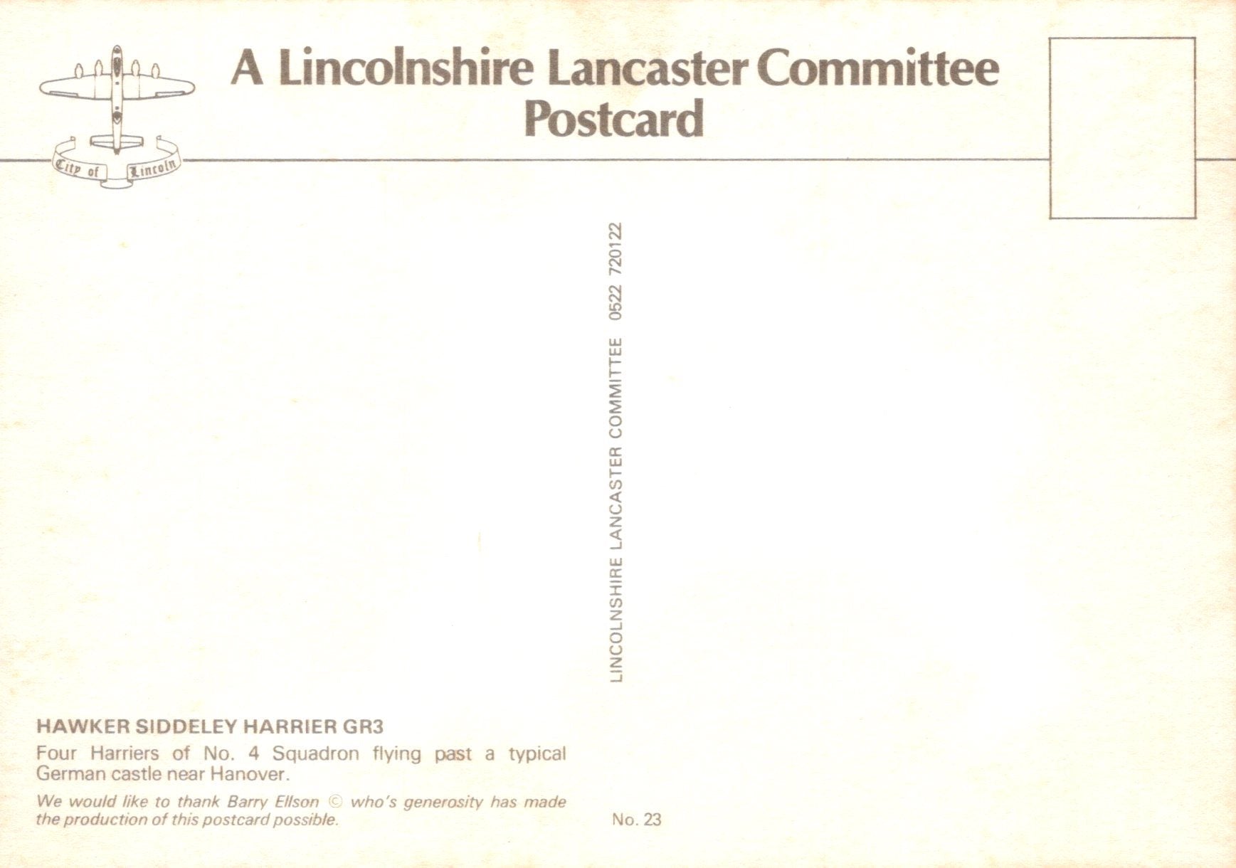 Publisher:  A Lincolnshire Lancaster Committee Postcard