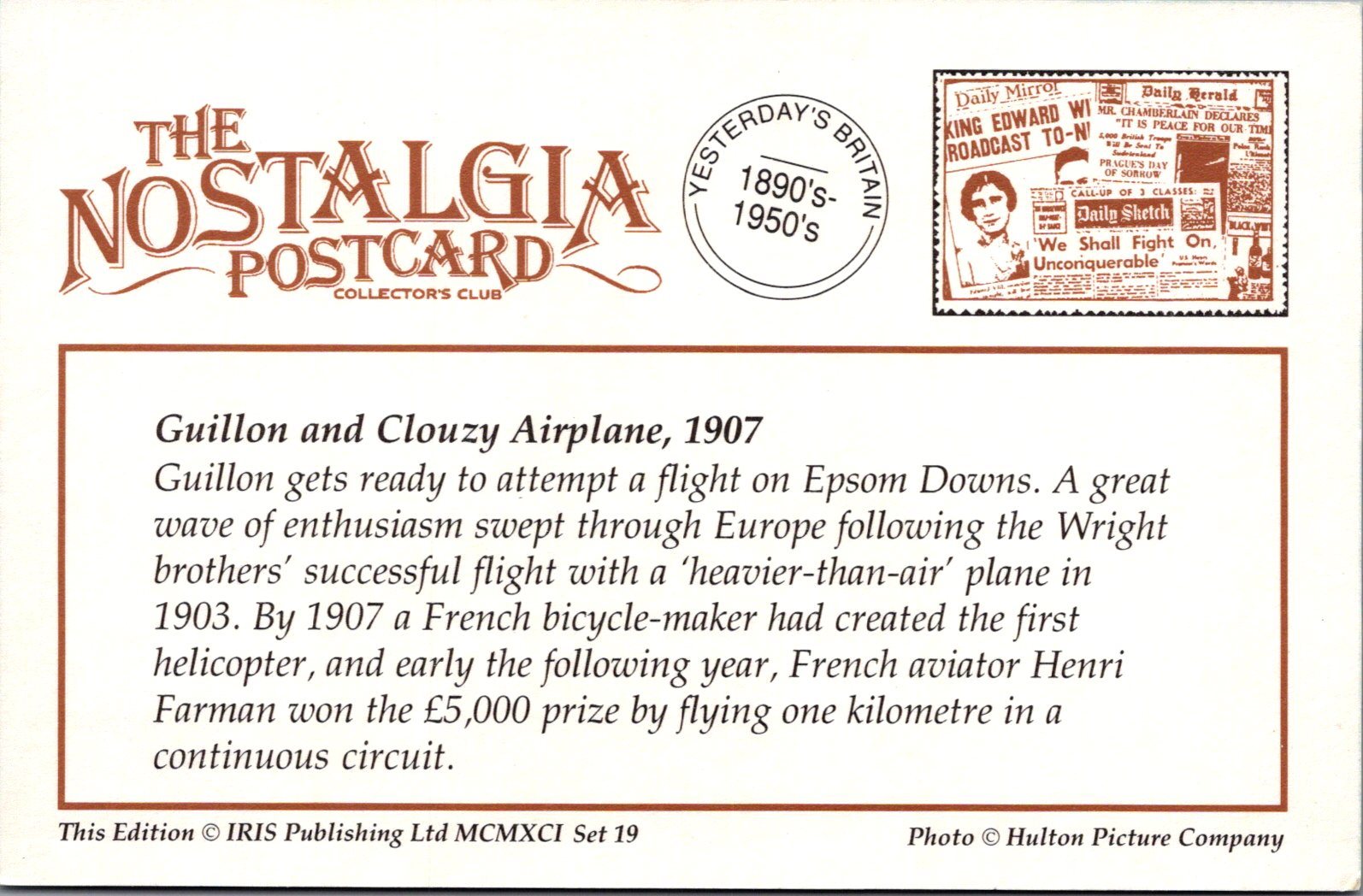Mo's Ref: Nostalgia Postcard - Guillon and Clouzy Airplane, 1907 - SW16518