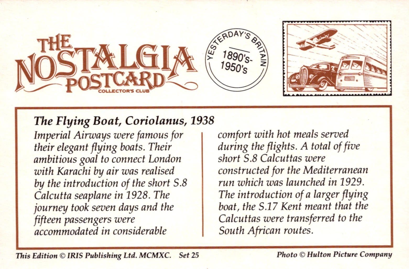 Nostalgia Postcard - The Flying Boat, Coriolanus, 1938 - SW1066