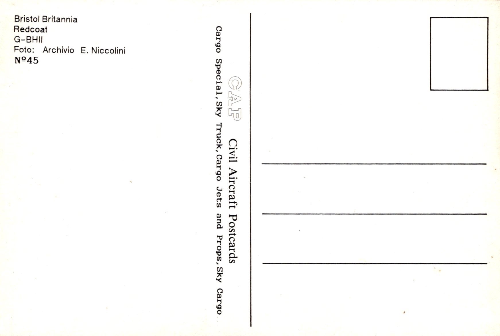 This is an Aviation Postcard - Bristol Britannia Redcoat Aeroplane SW20265