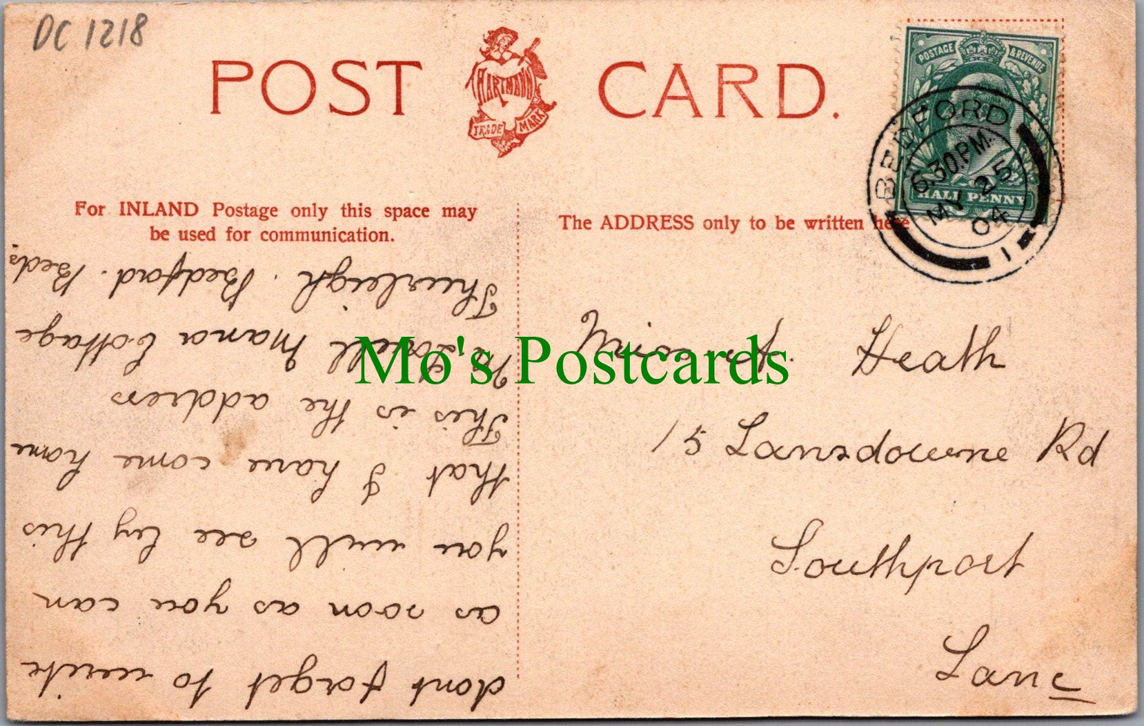 The 'Mo's Postcards' watermark does not appear on the actual postcard'.