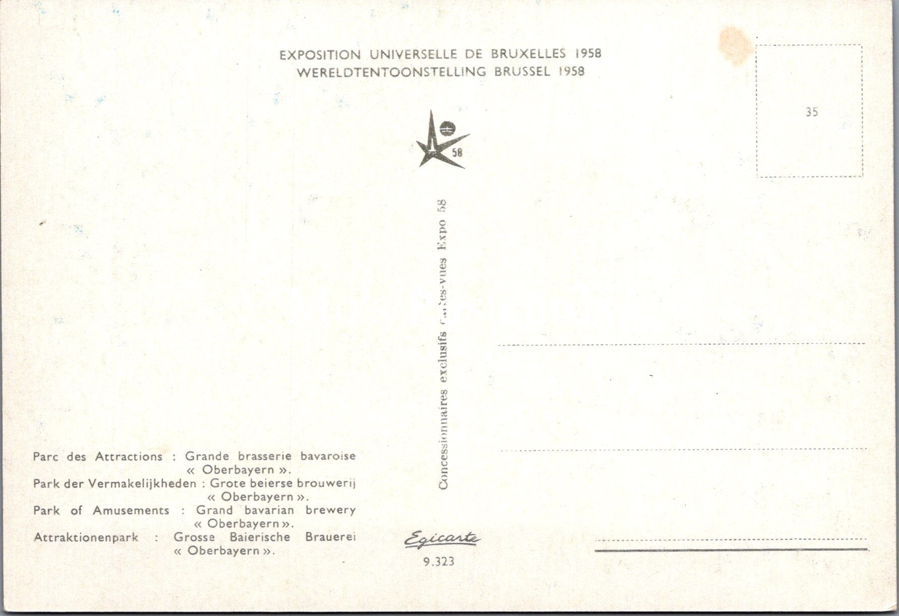 This is a Belgium Postcard - Brussels, Park of Amusements, Grand Bavarian Brewery SX261