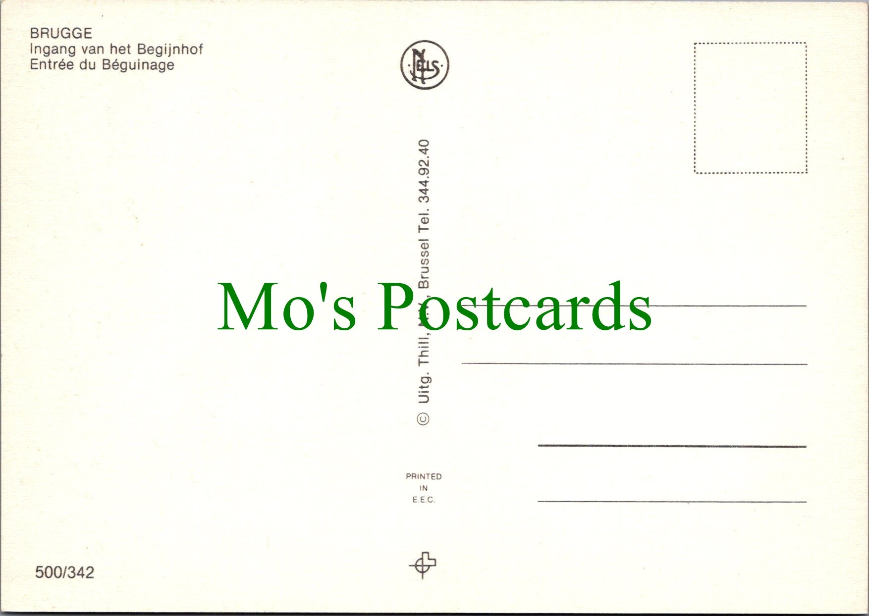 This is a postcard of Ingang Van Het Begijnhof, Brugge, Belgium