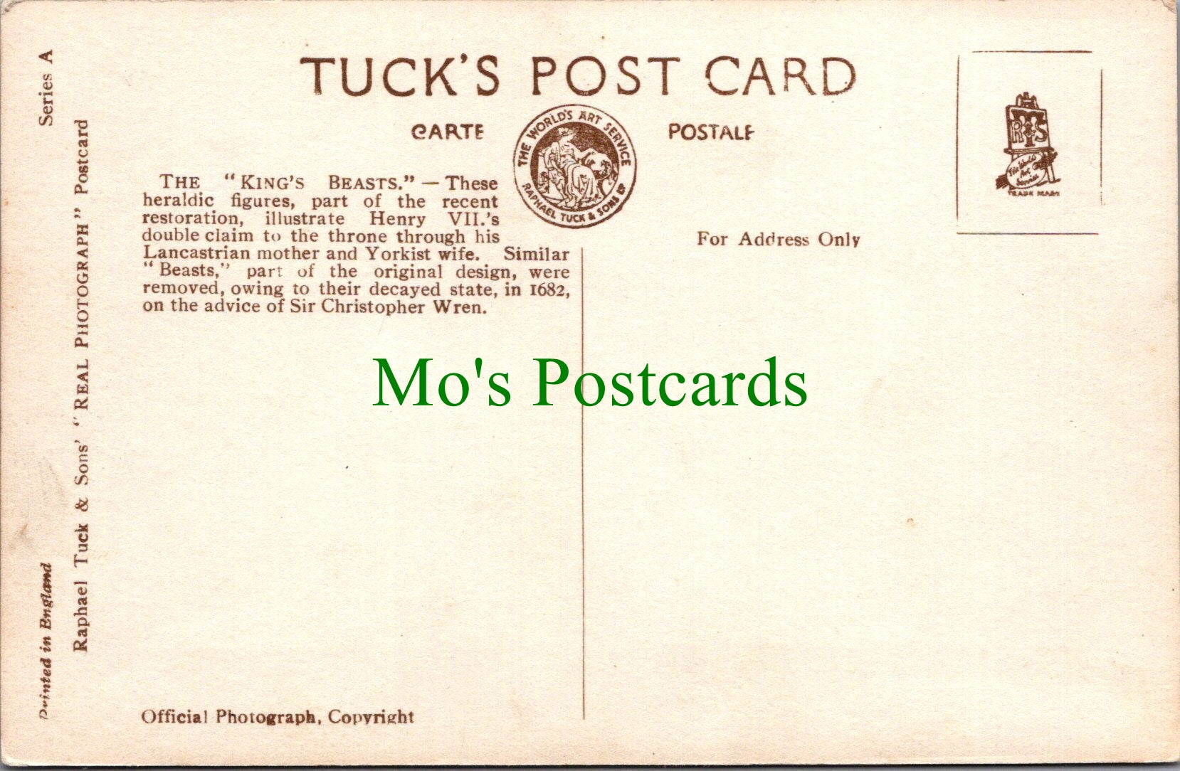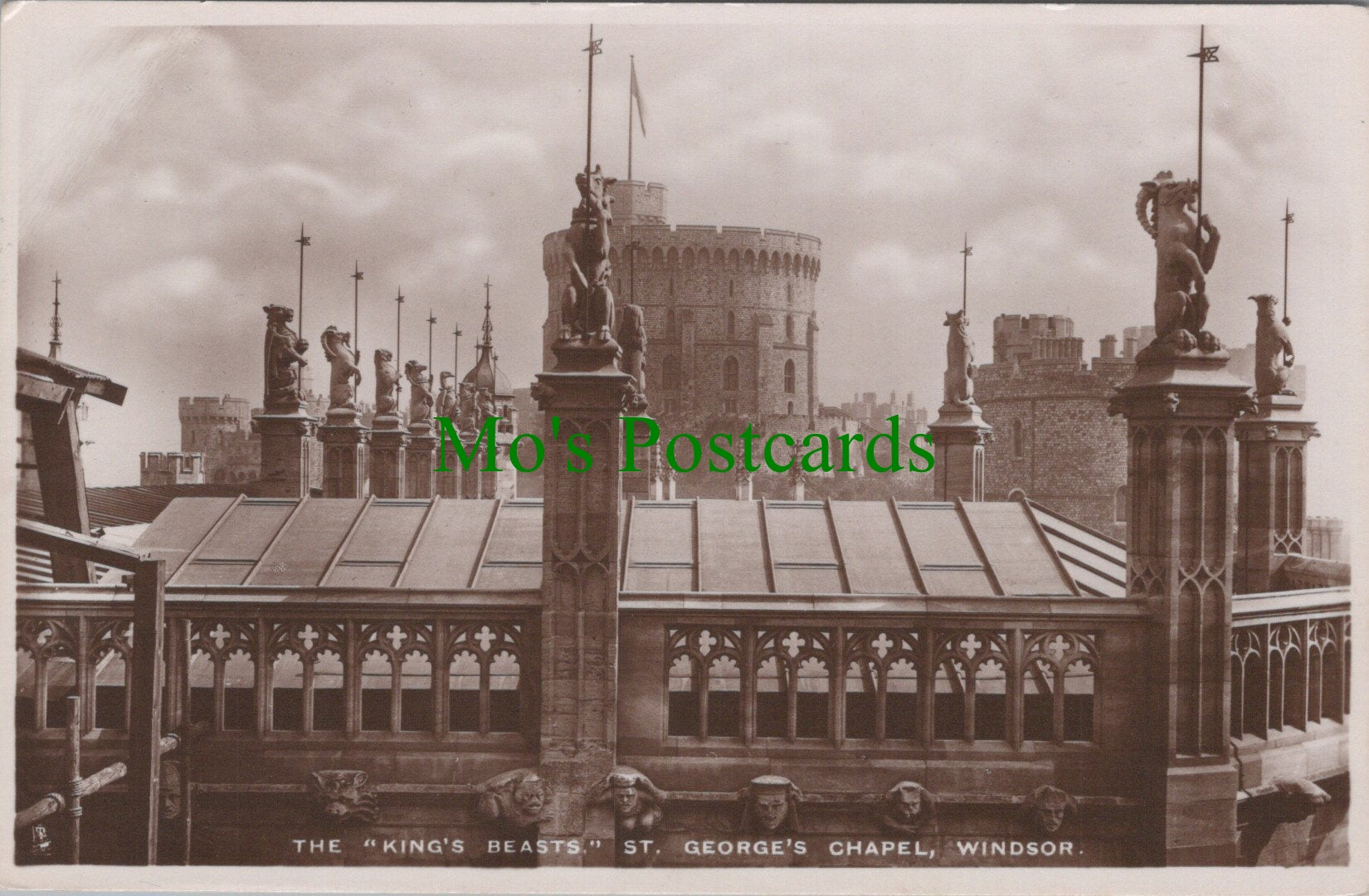 This is a Berkshire Postcard - Windsor, The "King's Beasts", St George's Chapel SW13221