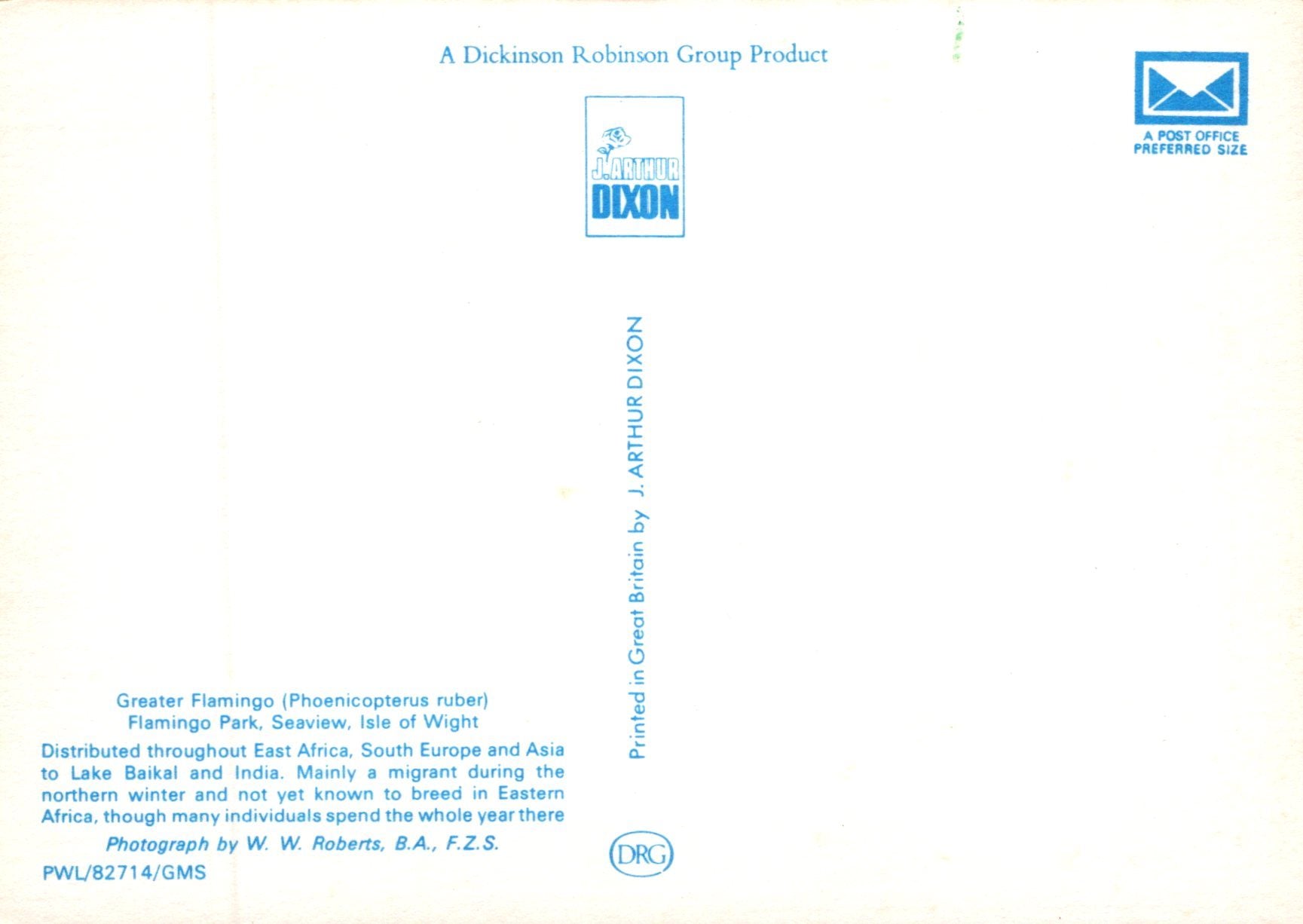 This is an Animals Postcard - Birds, Greater Flamingo, Flamingo Park, Seaview VT340