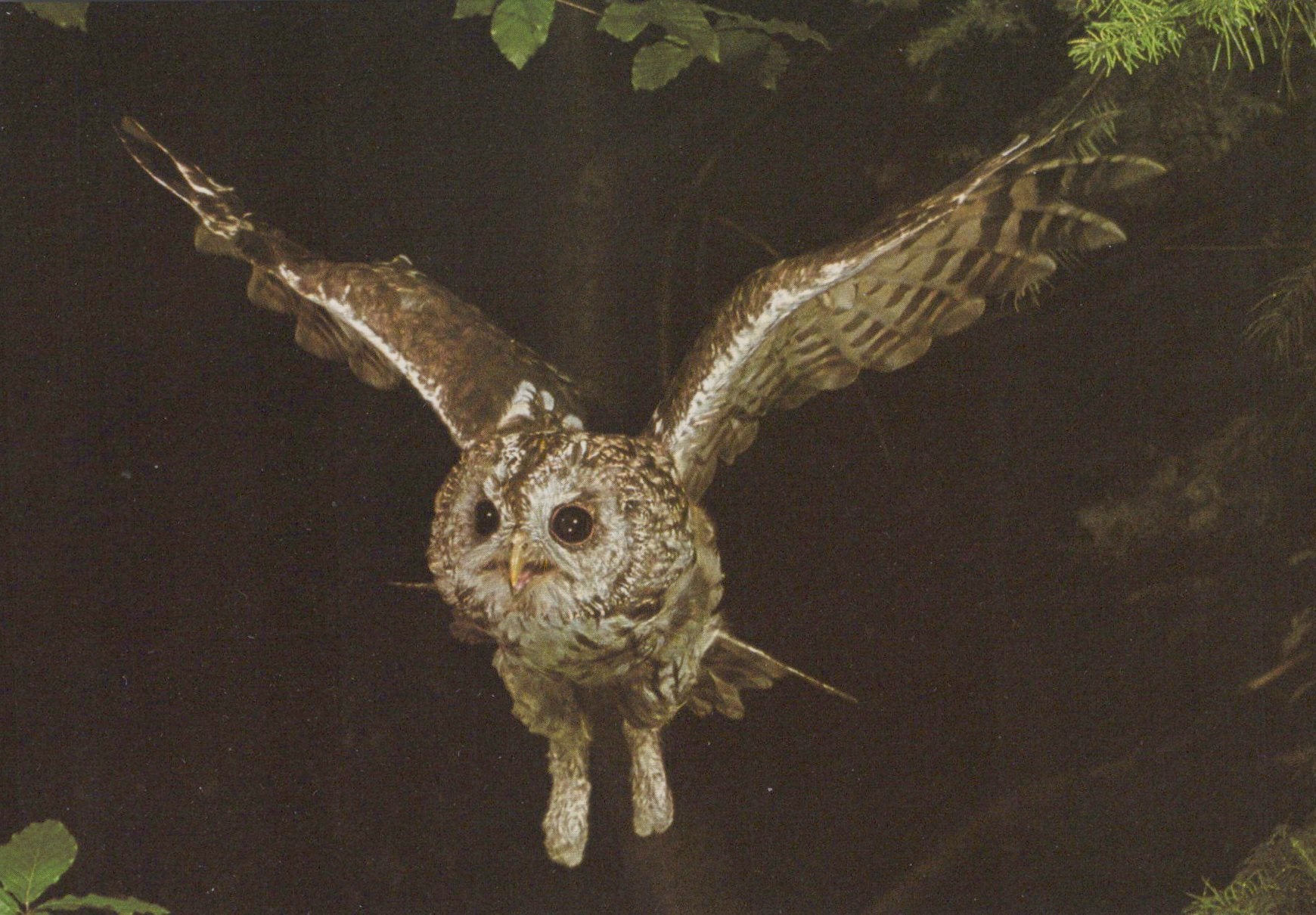 Mo's Ref: Animals Postcard - Birds, Tawny Owl in Flight VT339