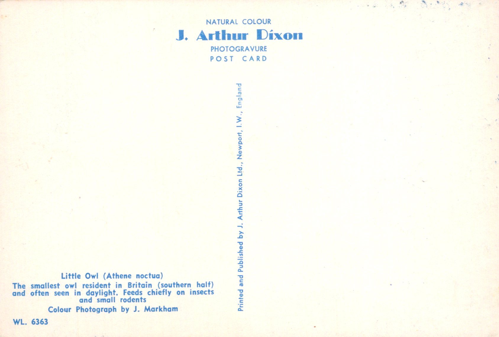 This is an Animals Postcard - Little Owl, Athene Noctua VT347