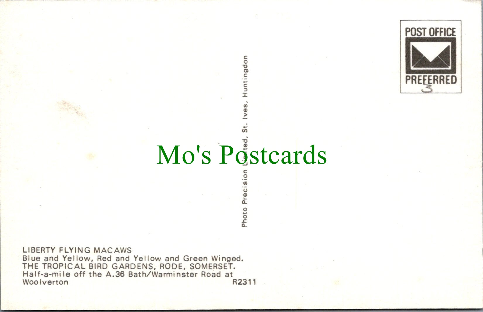 Liberty Flying Macaws, Tropical Bird Gardens, Rode, Somerset. This is a fantastic standard sized postcard which would be a great addition to your postcard collection. Published by Photo Precision Ltd.