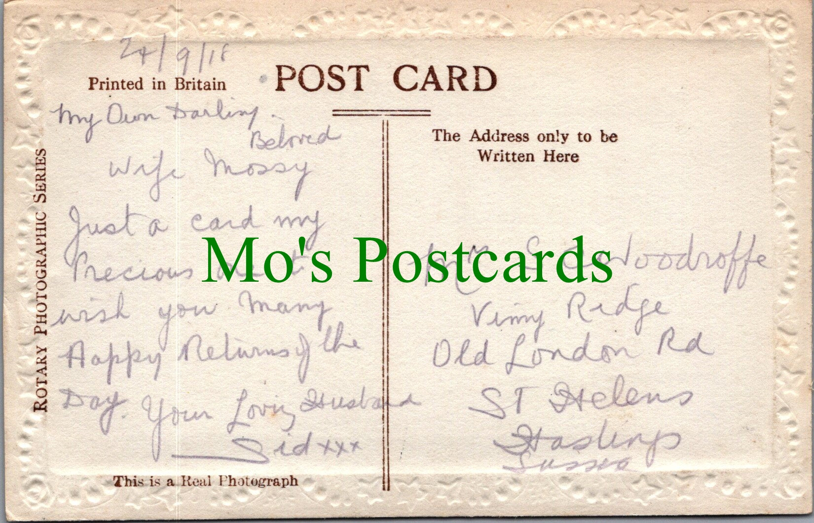 Birthday Thoughts and Best Wishes - Roses. This is a fantastic standard sized postcard which would be a great addition to your postcard collection. From the Rotary Photographic Series. Dated 1918.