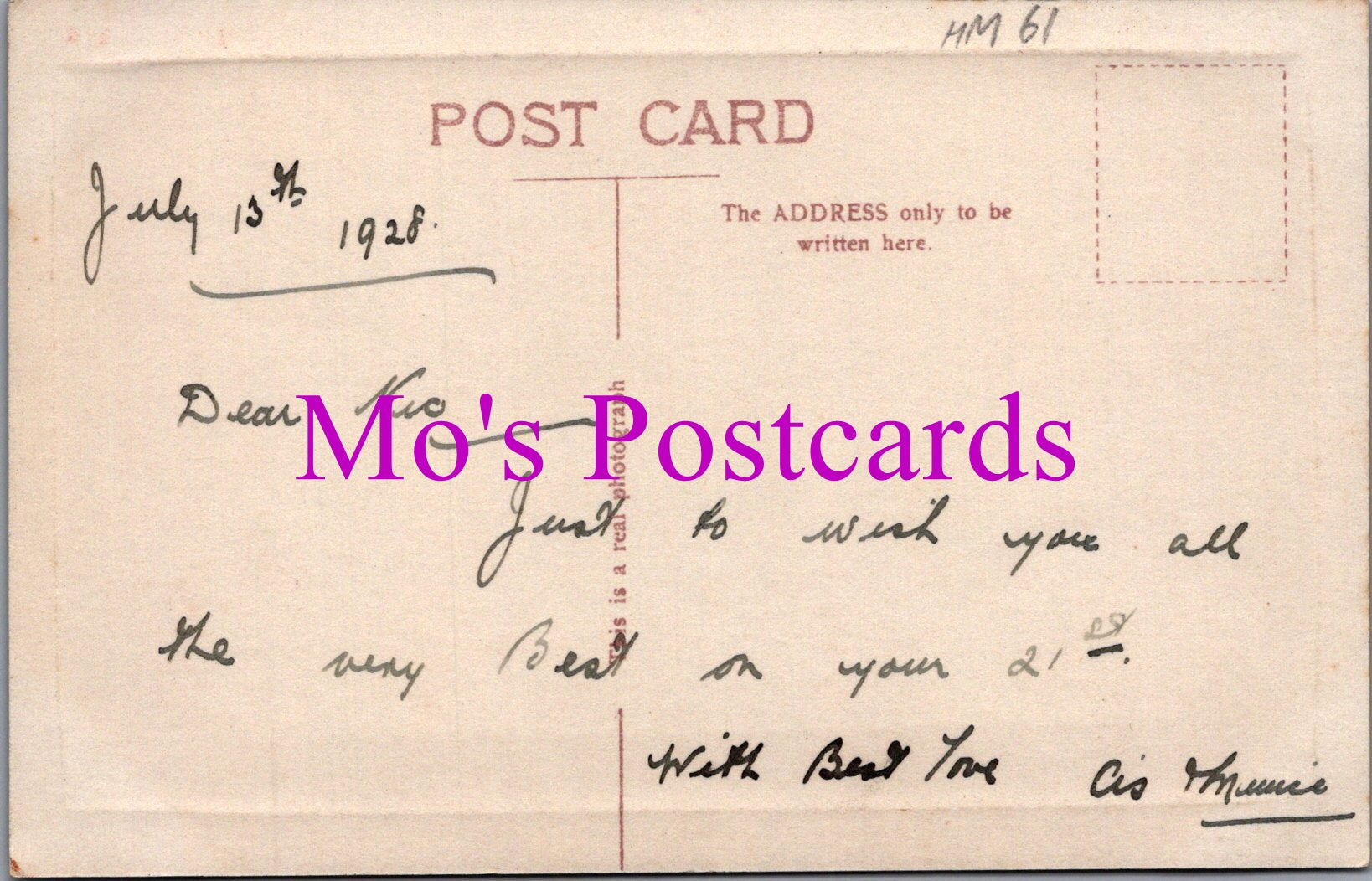 The 'Mo's Postcards' watermark does not appear on the actual postcard'.