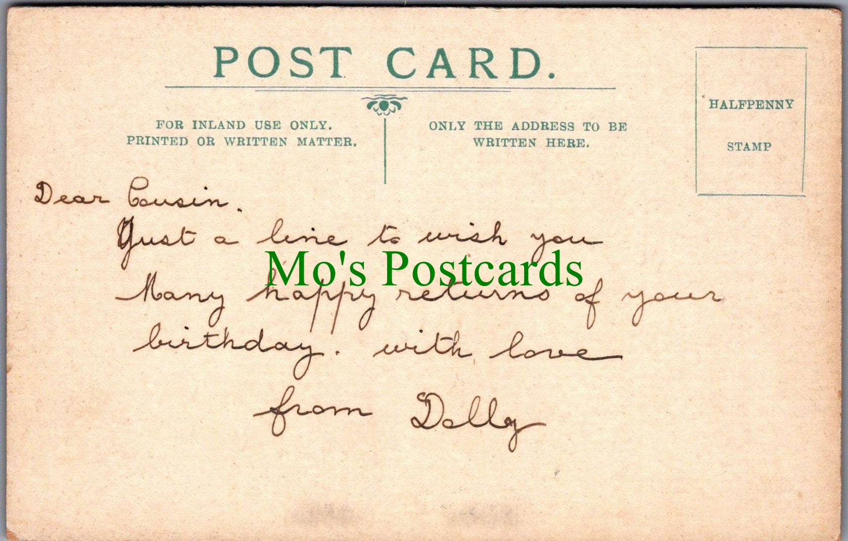 The 'Mo's Postcards' watermark does not appear on the actual postcard'.