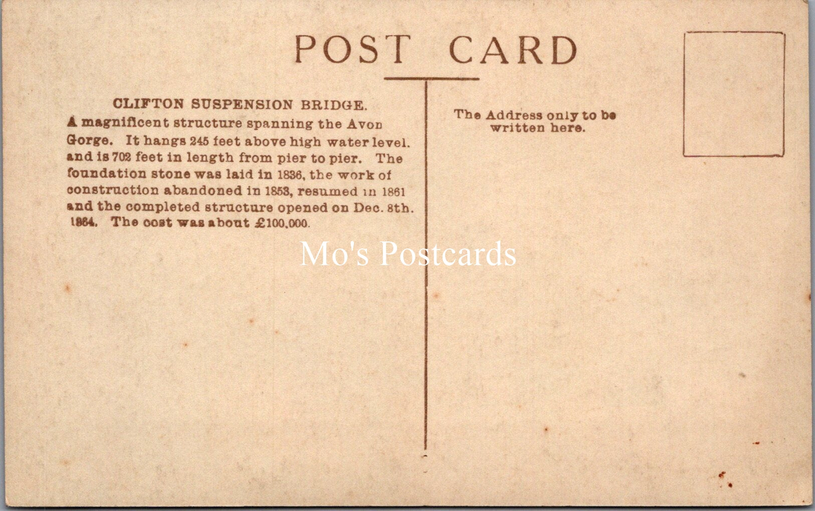 Mo's Ref: Bristol Postcard - Clifton Suspension Bridge From Hotwells SW17913