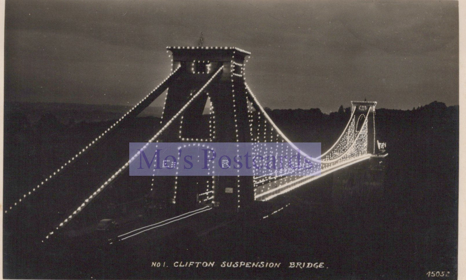 Mo's Ref: Bristol Postcard - Illuminated Clifton Suspension Bridge SW20058