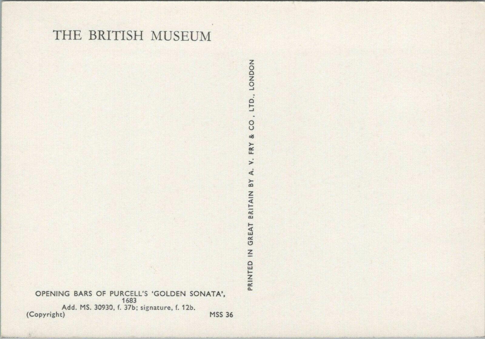 Postcard Description: British Museum Postcard - Music - Opening Bars of Purcell's 'Golden Sonata'