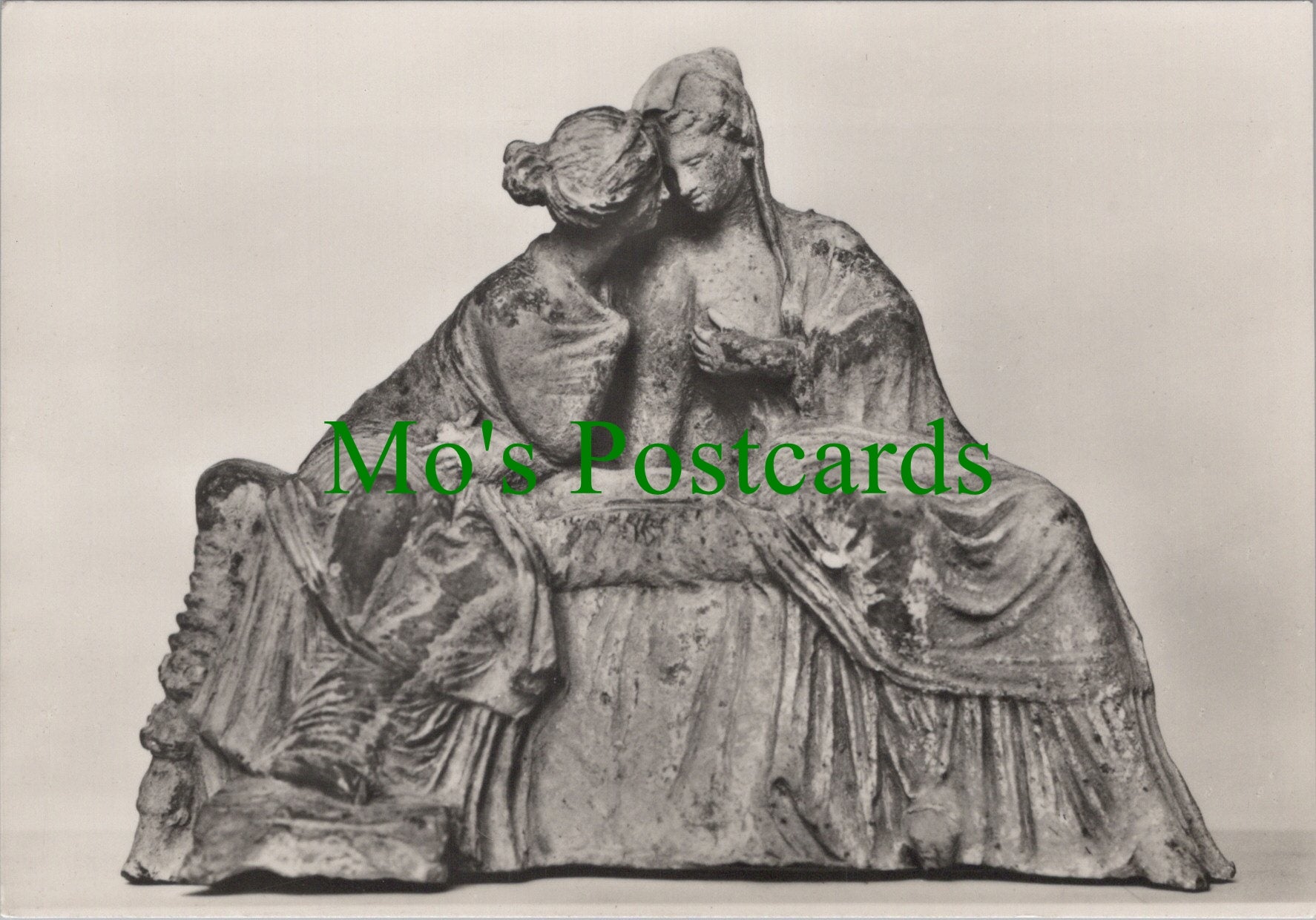 This is a British Museum Postcard - Women Gossiping, Made at Myrina, Asia Minor. Terracotta, Probably 2nd Century B.C - SW13669