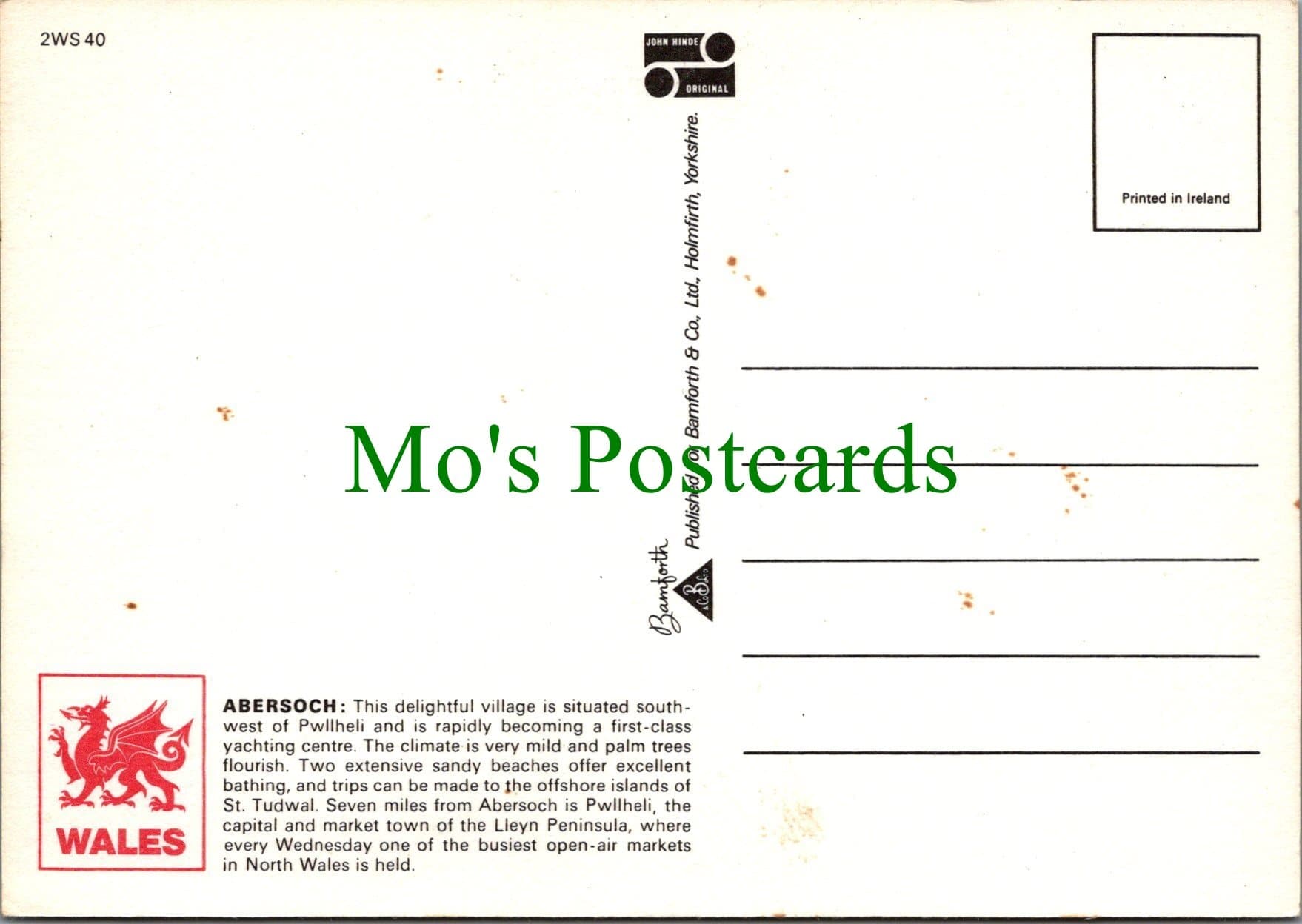 Mo's Postcards offers for sale a postcard of Abersoch Bay, Lleyn Peninsula.