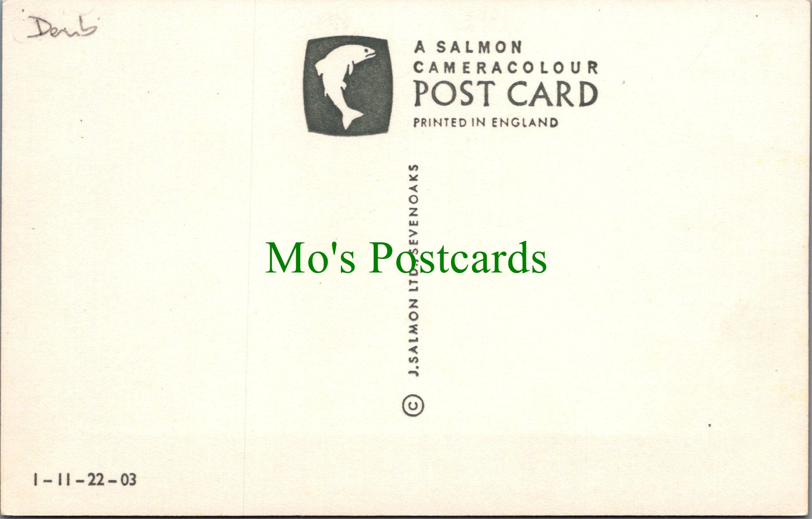 All of our postcards are posted to you inside a plastic sleeve and a board backed envelope which will be marked 'Please do not bend'. The 'Mo's Postcards' watermark does not appear on the actual postcard'.