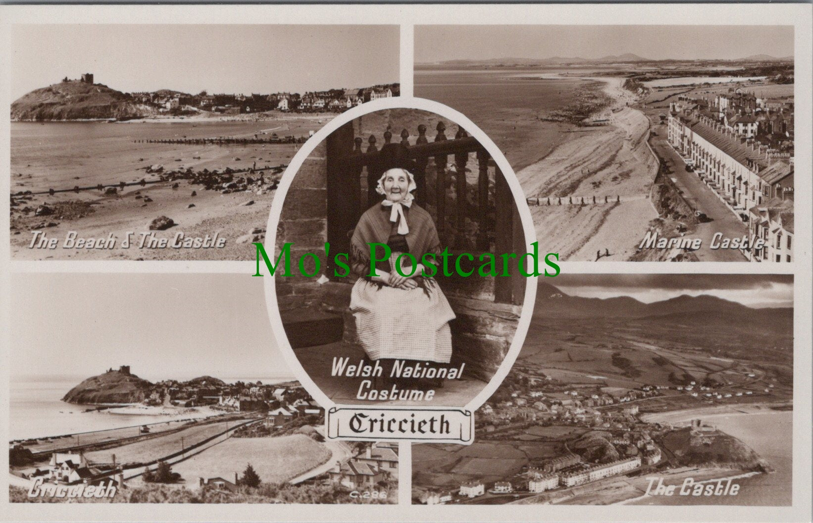 This is a postcard showing Views of Criccieth, Caernarvonshire
