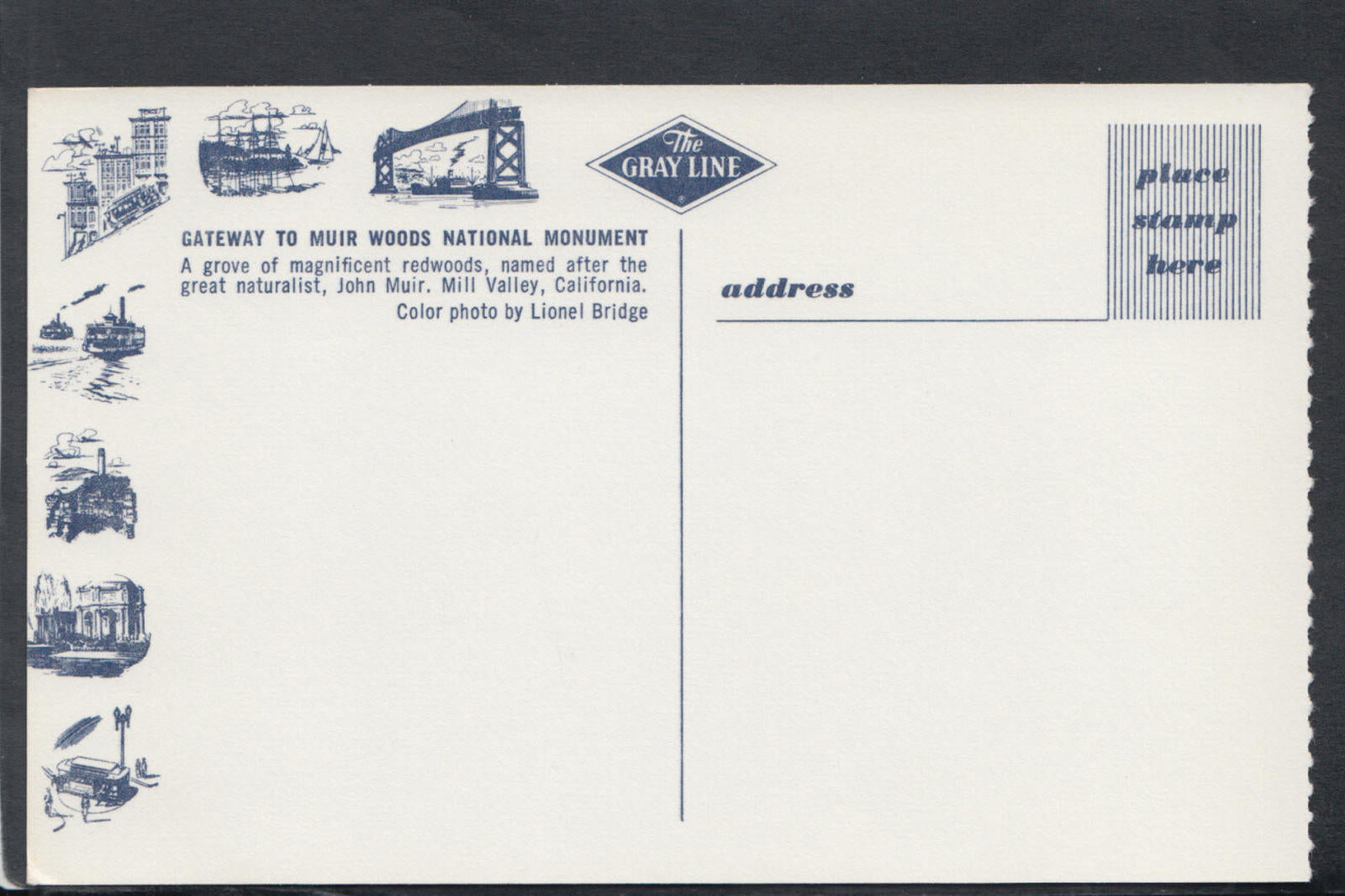 Postcard Description: America Postcard - Muir Woods National Monument, Mill Valley, California