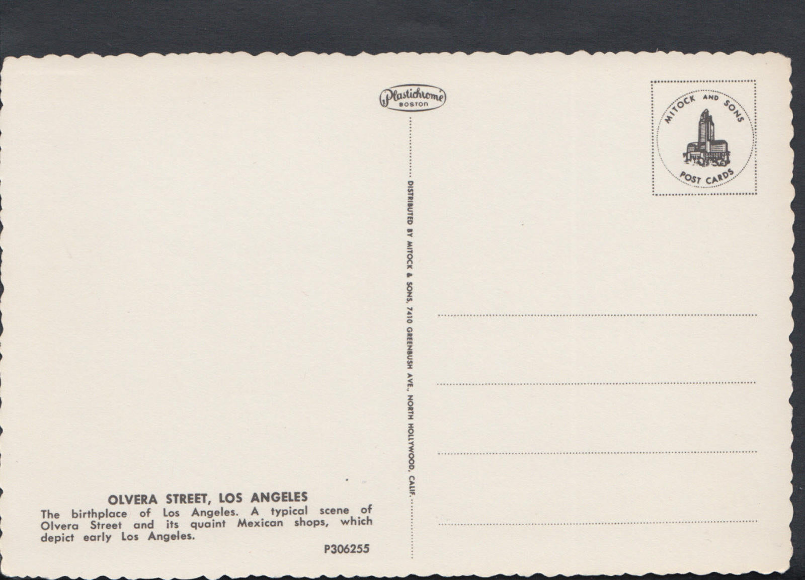 Postcard Description: America Postcard - Olvera Street, Birthplace of Los Angeles, California