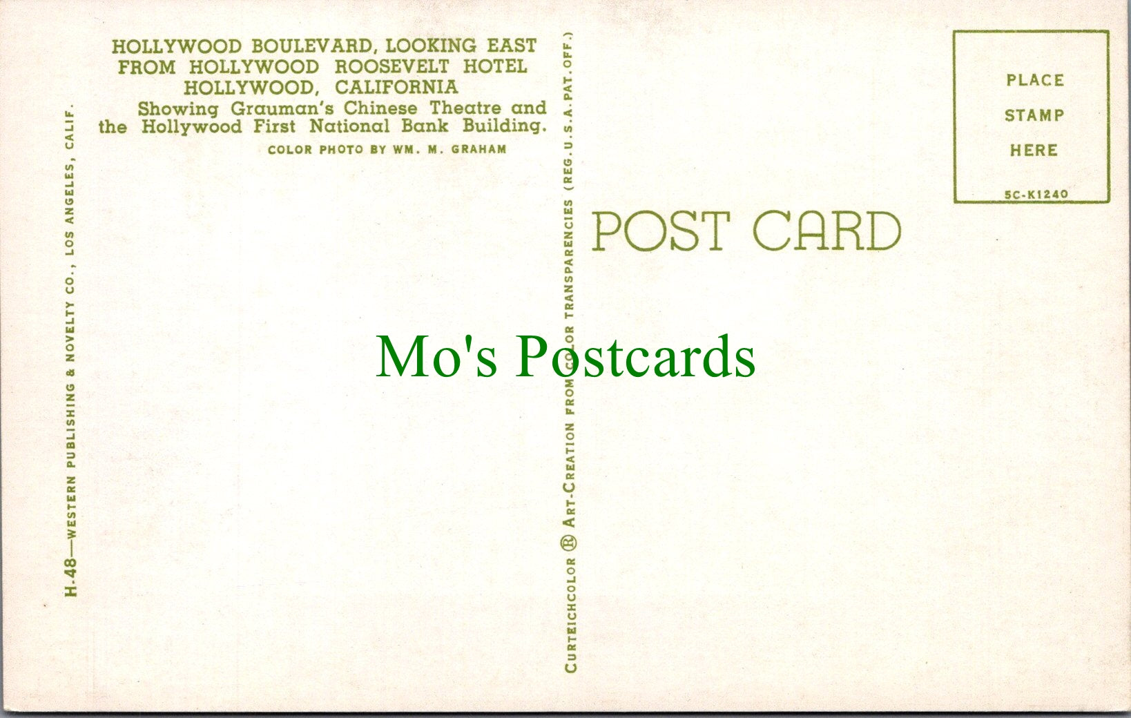 Hollywood Boulevard, Hollywood, California. This is a fantastic standard sized postcard which would be a great addition to your postcard collection.  Published by The Western Publishing & Novelty Co.