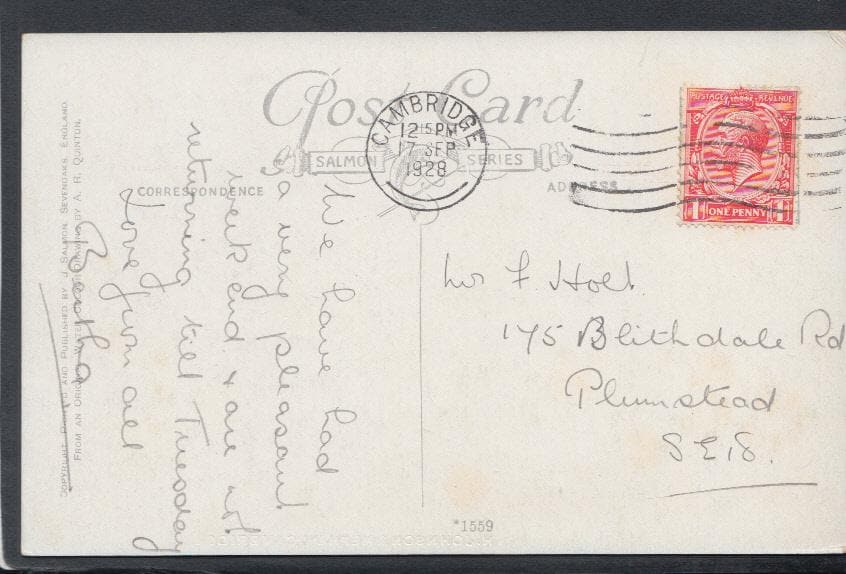 Cambridgeshire Postcard - Clare College, Cambridge - Artist A.R.Quinton SW1233