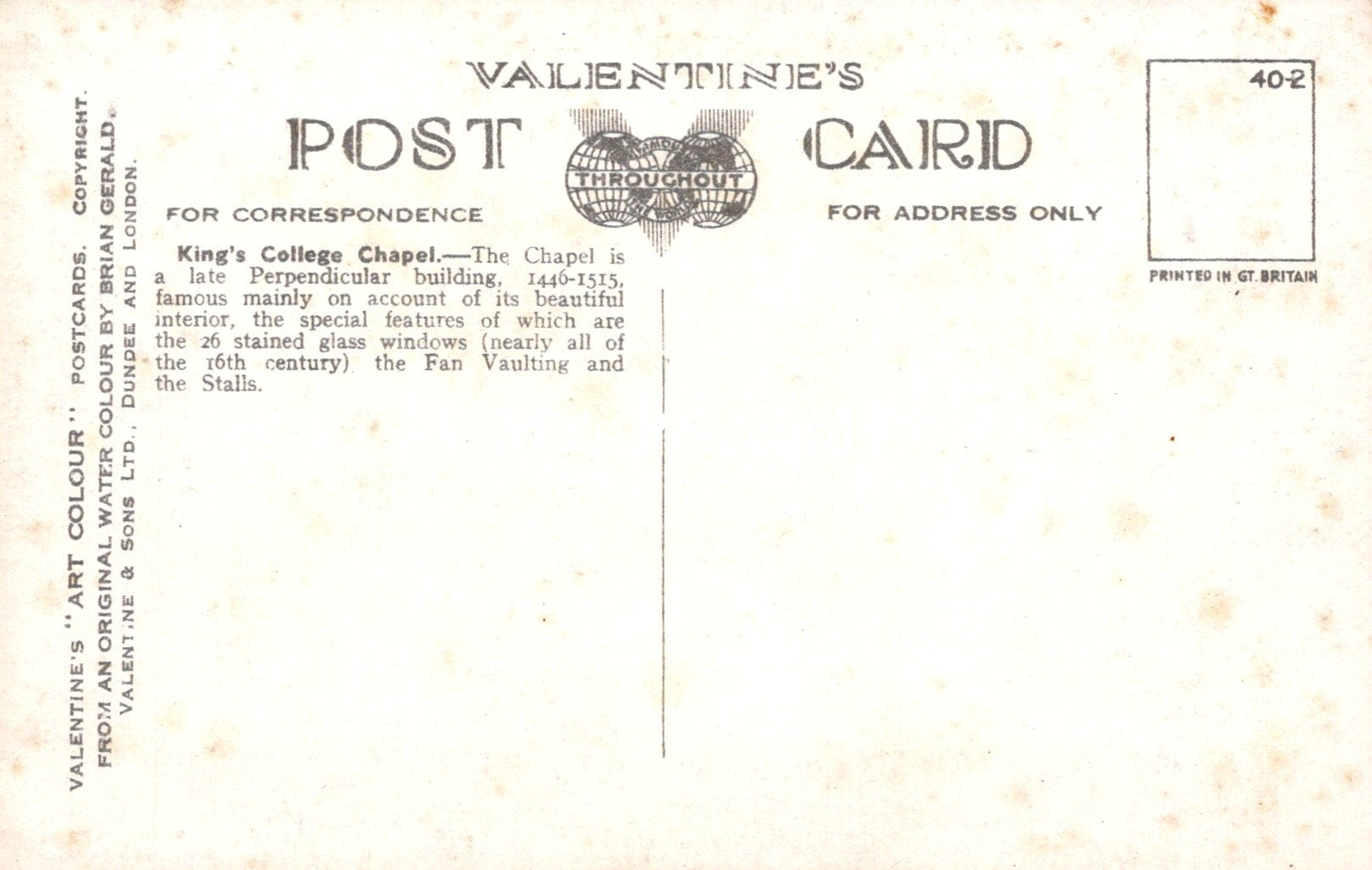 Publisher: Valentine "Art Colour". Artist Brian Gerald