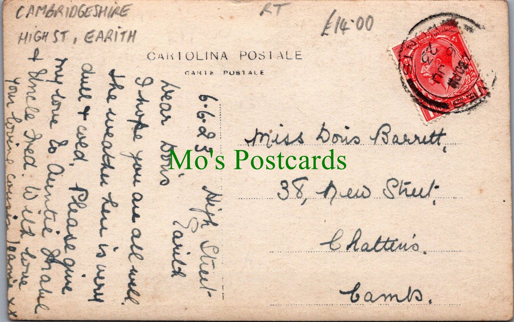 High Street, Earith, Cambridgeshire. This is a fantastic standard sized postcard which would be a great addition to your postcard collection. Posted in 1923.