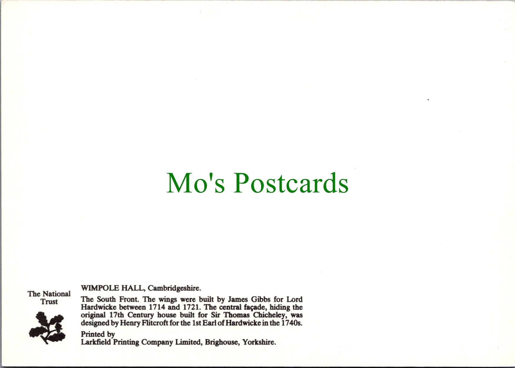 South Front, Wimpole Hall, Cambridgeshire. This is a fantastic continental sized postcard which would be a great addition to your postcard collection.