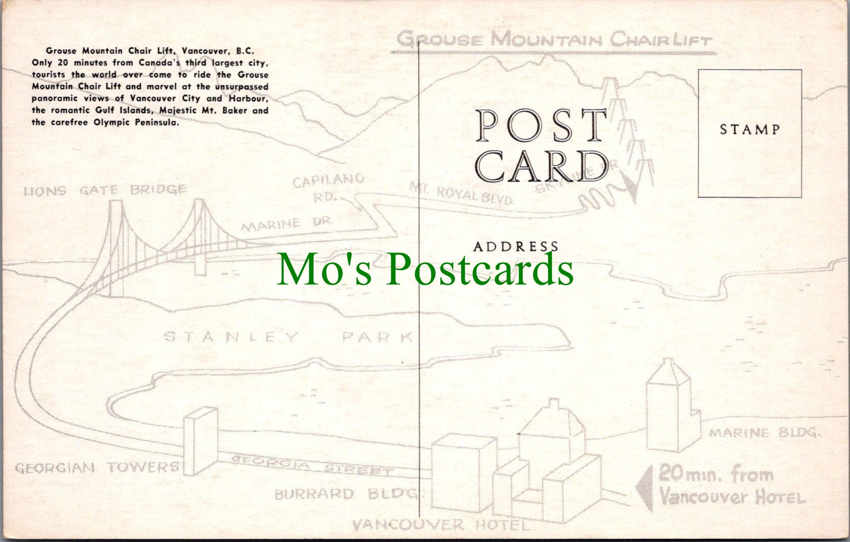 Grouse Mountain Chair Lift, Vancouver. This is a fantastic standard sized postcard which would be a great addition to your postcard collection.