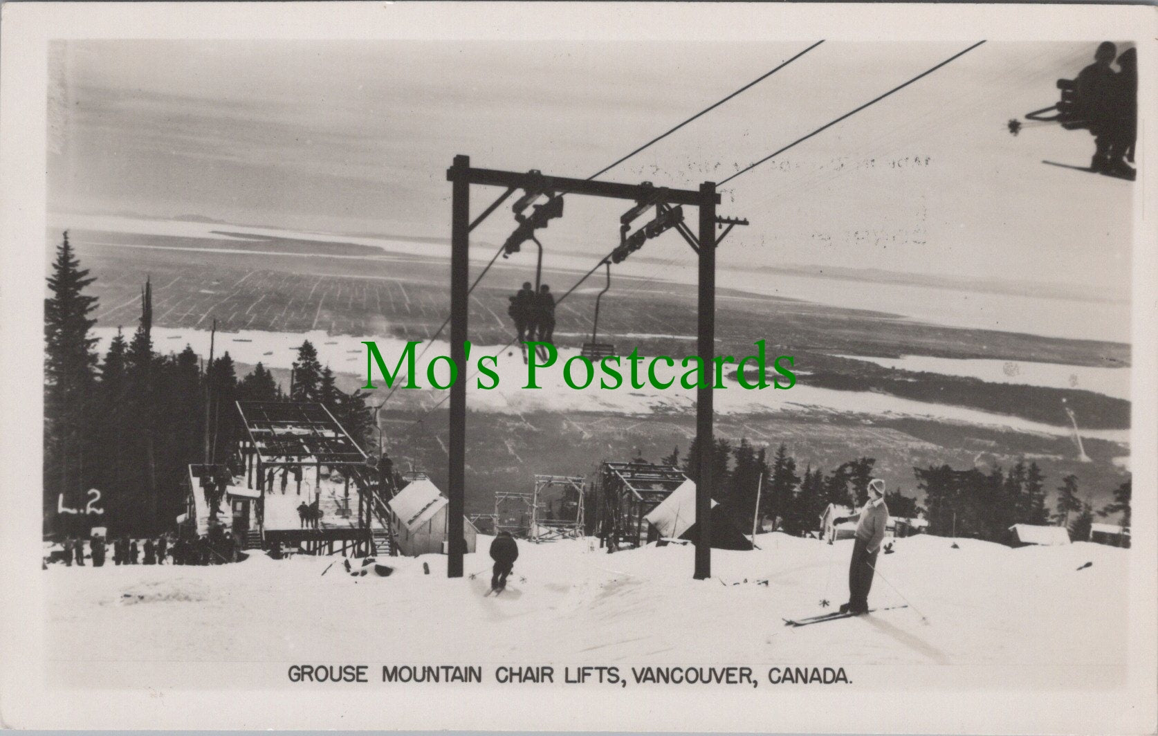 This is a postcard of Grouse Mountain Chair Lifts, Vancouver, Canada